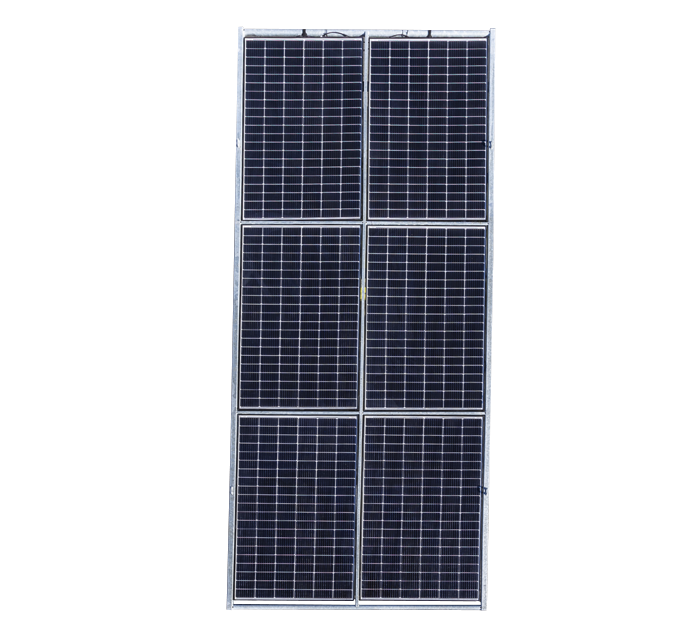 Empilable jusqu’à 12 unités, il permet d’ajuster facilement la capacité selon les besoins du site. Chaque cadre est équipé de panneaux solaires fabriqués en France, délivrant 2,37 kWc pour une production fiable et performante, même dans des conditions exigeantes.